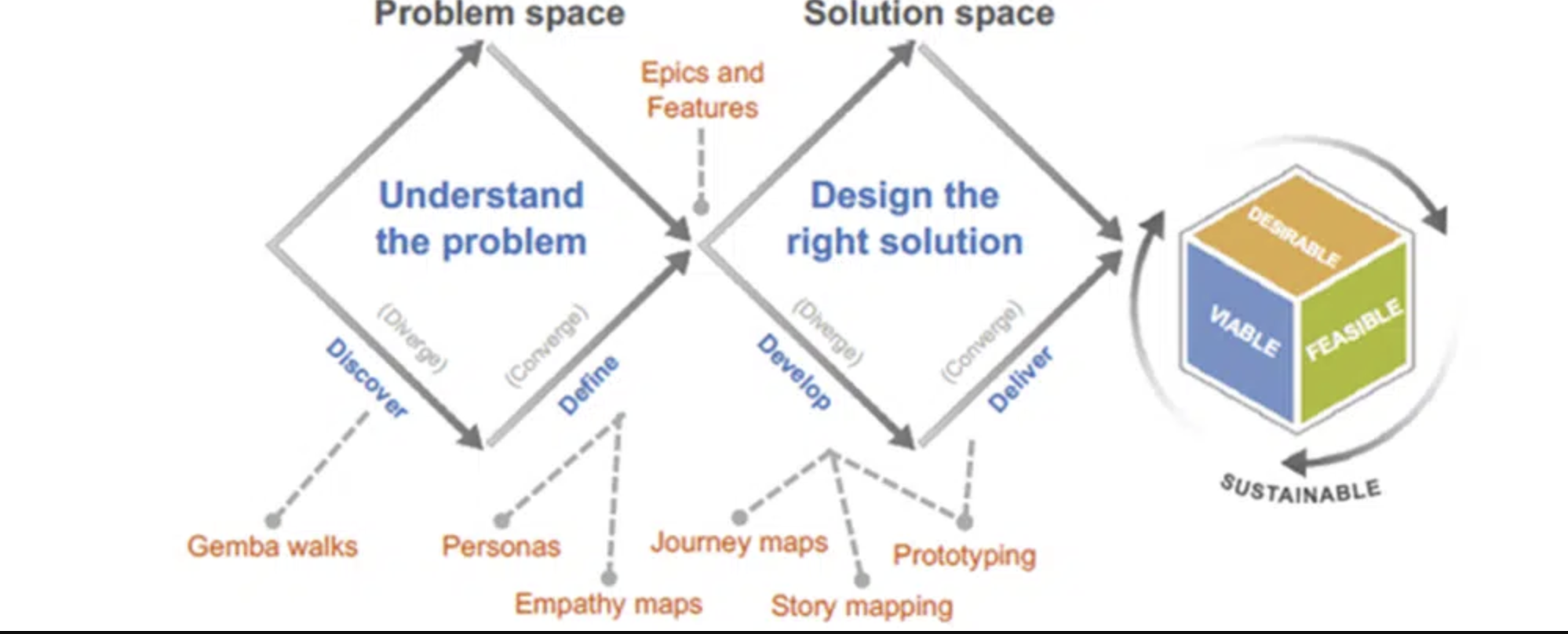 - 方法:田野觀察(Gemba walks)、同理心地圖(Empathy maps)